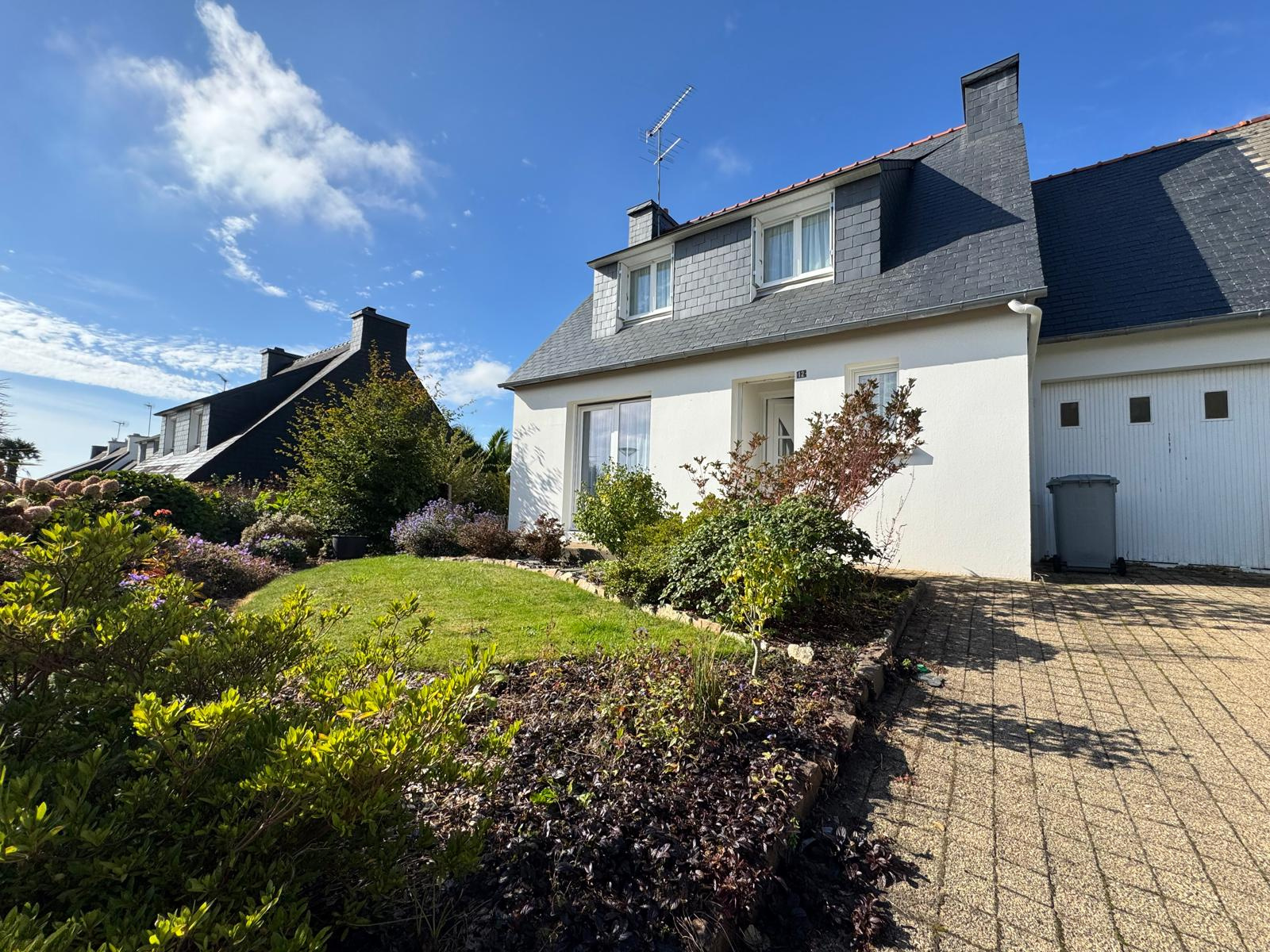 EXCLUSIVITE ! QUIMPER SUD EST, située dans un quartier calme à proximité des réseau bus, vous apprécierez l’entretien apporté à cette jolie maison de 4 chambres entourée d’un très beau jardin paysagé ! La maison LUMINEUSE & FONCTIONNELLE offre un hall d’entrée spacieux donnant sur une grande pièce de vie avec cheminée et accès terrasse, une cuisine attenante aménagée équipée, WC et GARAGE. L’étage distribue 3 chambres, une salle de bains et une 4ème chambre au dessus du garage. En très bon état général, cette maison de près de 100m2 habitables a connu des travaux appréciables (toiture en ardoises naturelles, électricité, cuisine, ravalement…) Elle n’attend plus que vos idées et votre déco !
