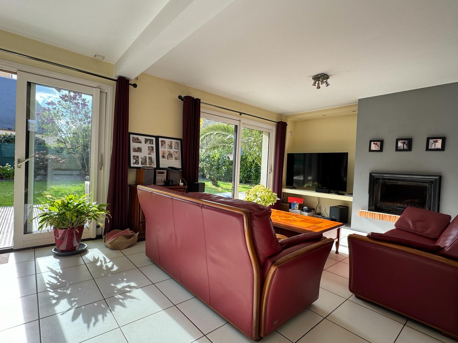 PLEUVEN, en direction de BENODET, découvrez cette belle maison de 130m2 habitables édifiée sur son terrain arboré de 1200m2. Cette construction en demi-niveaux propose un hall d’entrée, une pièce de vie lumineuse donnant sur la terrasse au SUD/OUEST avec cheminée et cuisine aménagée équipée, un dégagement avec WC. A mi étage : une belle chambre avec placards et balcon, une salle d’eau attenante. A l’étage : dégagement avec 2 grandes chambres et placards, une salle de bains avec WC et enfin quelques marches plus haut la dernière chambre. La maison profite d’un sous-sol en deux niveaux avec d’n côté GARAGE et buanderie et de l’autre une grande cave et bureau. Lumineuse & de solide construction, elle attend désormais votre déco & aménagements!