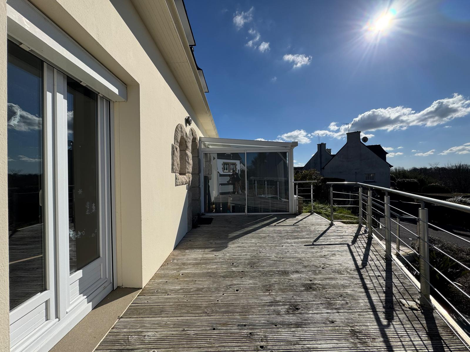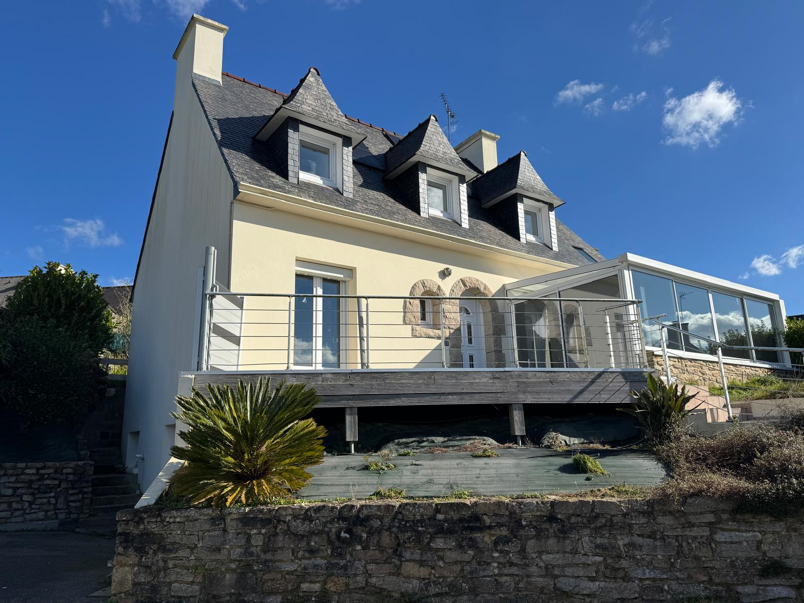 COMPROMIS SIGNE ! QUIMPER, quartier calme en impasse avec réseau BUS, belle maison traditionnelle de 138m2 habitables élevée sur un sous-sol complet avec GARAGE. La maison aux volumes confortables offre une entrée avec rangement donnant sur salon/séjour en L avec une grande cuisine aménagée équipée ouvrant sur une véranda et le jardin à l’arrière. On retrouve également une chambre et WC au rez-de-chaussée. A l’étage, on profite de 3 chambres dont une avec dressing, une salle d’eau récente et WC séparé. En bon état général cette maison s’appuie sur un sous-sol avec un bel espace de rangements et une terrasse de chaque côté de la maison.