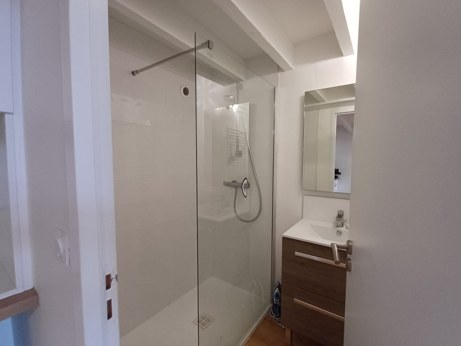 QUIMPER – QUARTIER SAINT-BERNADETTE, dans une petite résidence rénovée et sécurisée de 6 logements, Appartement type studio duplex de 47 m2, état neuf, lumineux, il comprend une pièce séjour avec cuisine aménagée ouverte, wc, salle d’eau, chambre à l’étage avec placards. Terrasse bitumée privative devant le logement. Place de stationnement privative. Petit local annexe individuel pour stockage au dernier étage. Sélection sur dossier. Privilégier les contacts par mails. Disponible le 05/11/25.