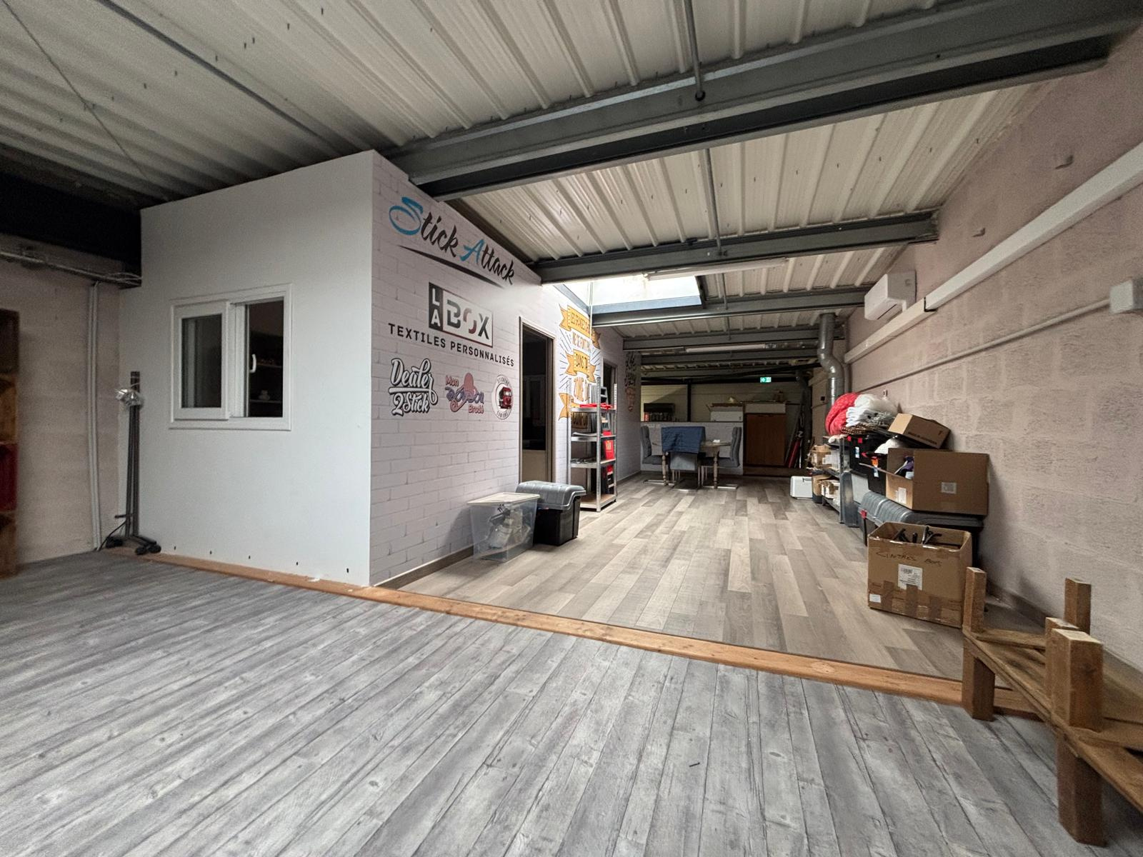 À l’étage, stockage / open space, accompagnée de bureaux.